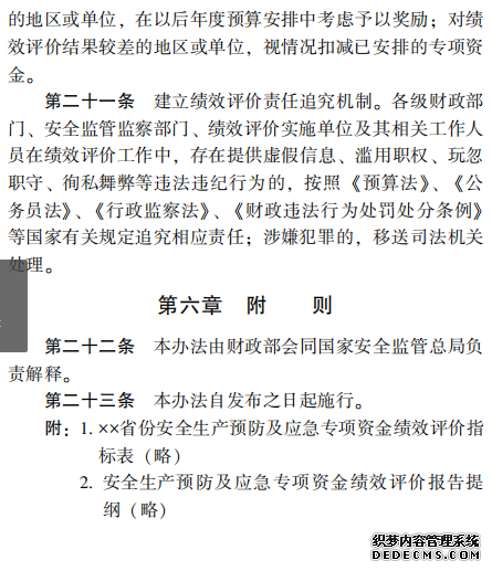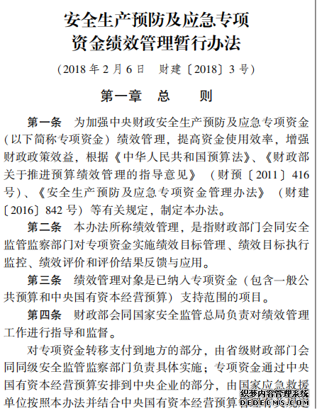 安全生產(chǎn)預防及應(yīng)急專項 資金績效管理暫行辦法