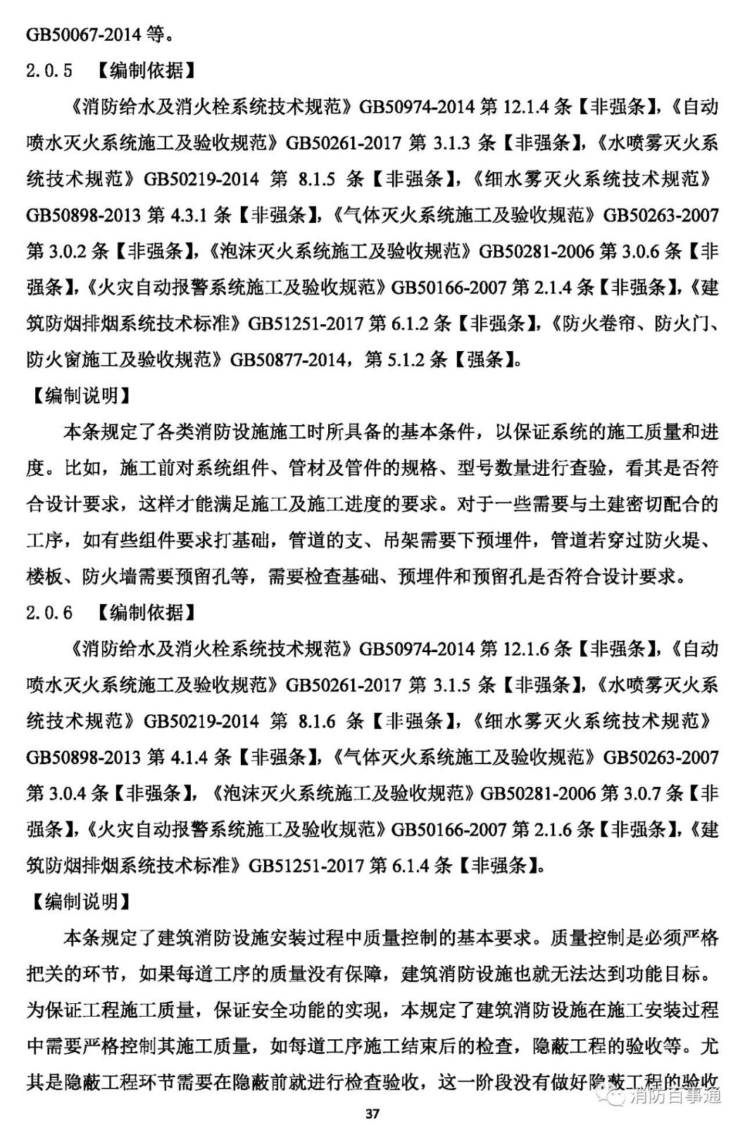 1.0.5 執(zhí)行本規(guī)范必須同時(shí)加強(qiáng)工程質(zhì)量安全管理,嚴(yán)格規(guī)范的實(shí)施監(jiān)督。建筑在規(guī)劃、設(shè)計(jì)、施工和使用中的消防設(shè)施,除應(yīng)遵守本規(guī)范外,尚應(yīng)符合國(guó)家現(xiàn)行有關(guān)規(guī)范的規(guī)定。