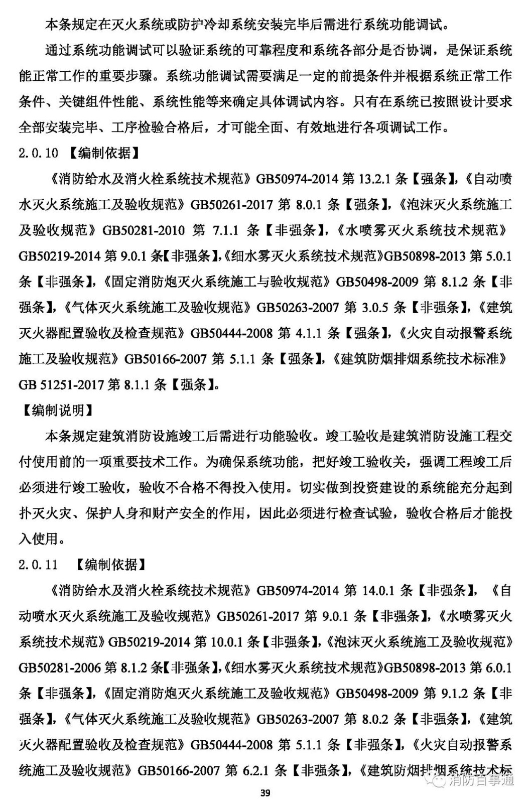 2.0.9 固定或半固定滅火系統(tǒng)或防護(hù)冷卻系統(tǒng)、防排煙系統(tǒng)和火災(zāi)自動(dòng)報(bào)警系統(tǒng)安裝完畢后,應(yīng)對(duì)系統(tǒng)進(jìn)行系統(tǒng)功能調(diào)試。