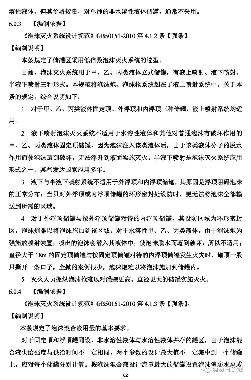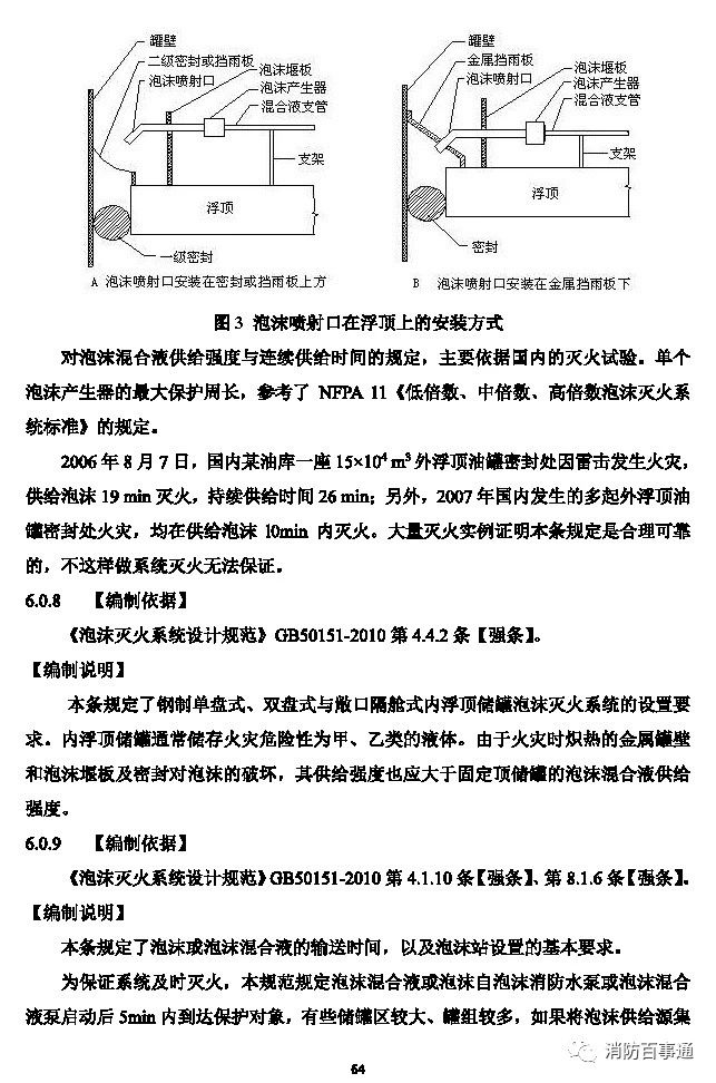 2 對(duì)于水溶性甲、乙、丙類液體和其它對(duì)普通泡沫有破壞作用的甲、乙、丙類液體固定頂儲(chǔ)罐,應(yīng)為液上噴射系統(tǒng)或半液下噴射系統(tǒng);