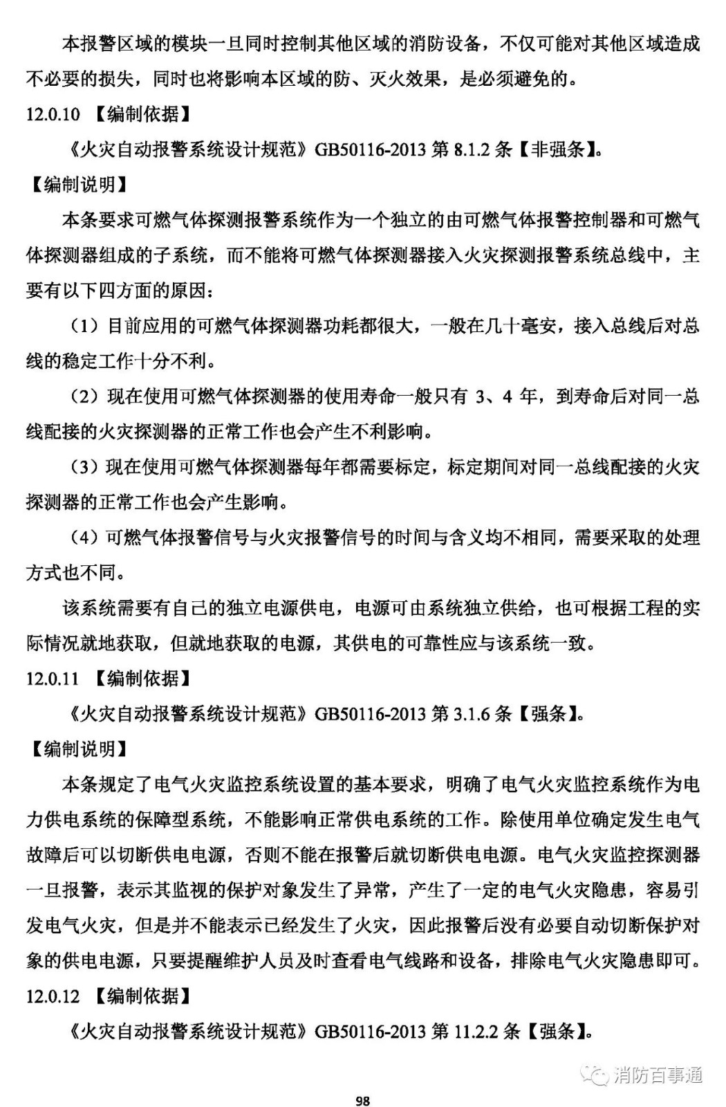 12.0.10 可燃?xì)怏w探測(cè)報(bào)警系統(tǒng)應(yīng)獨(dú)立組成??扇?xì)怏w探測(cè)報(bào)警器和非獨(dú)立式電氣火災(zāi)監(jiān)控探測(cè)器不應(yīng)直接接入火災(zāi)報(bào)警控制器的探測(cè)器回路。