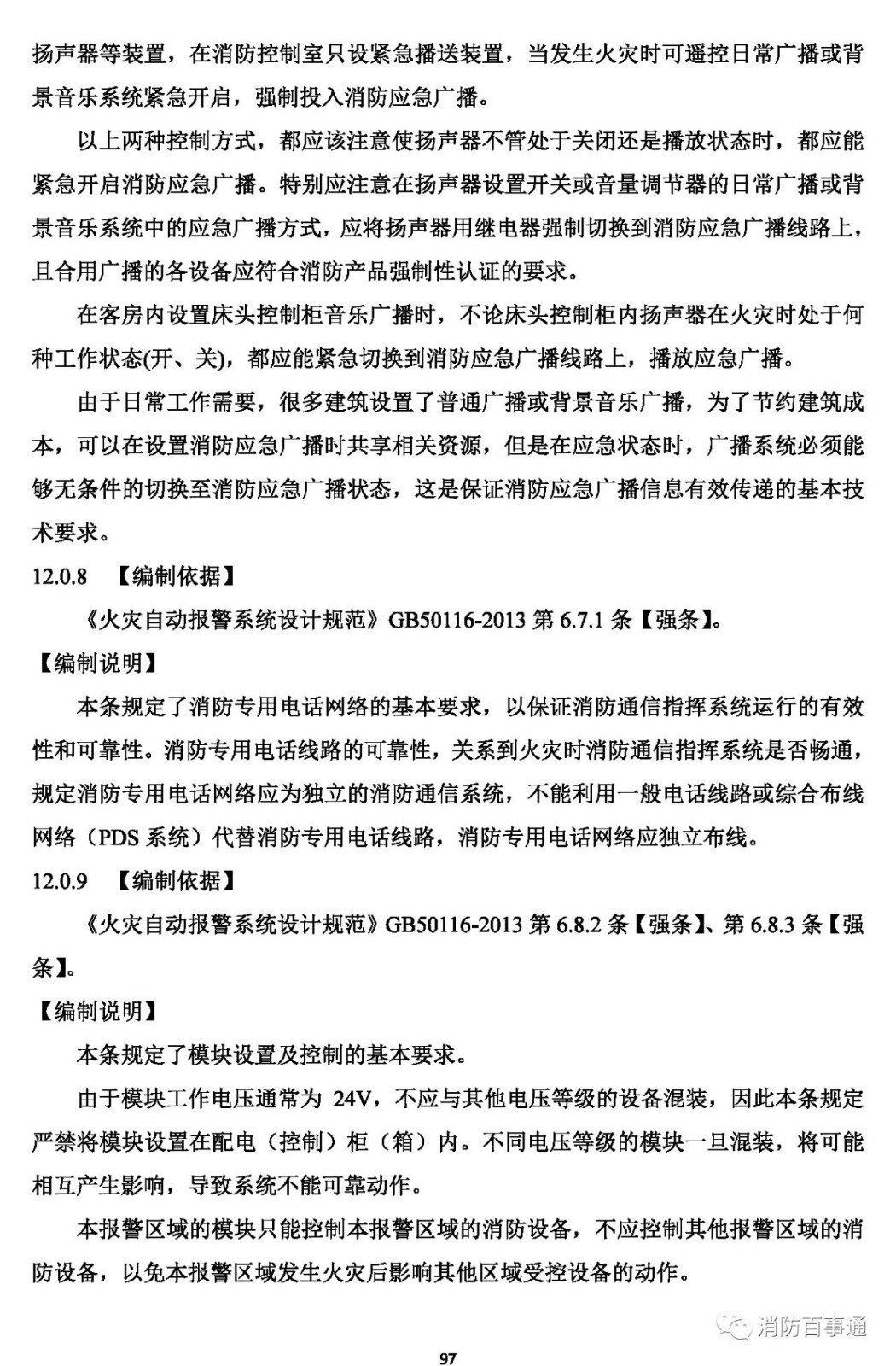 12.0.9 模塊嚴(yán)禁設(shè)置在配電(控制)柜(箱)內(nèi)。一個(gè)報(bào)警區(qū)域內(nèi)的模塊不應(yīng)控制其他報(bào)警區(qū)域的設(shè)備。