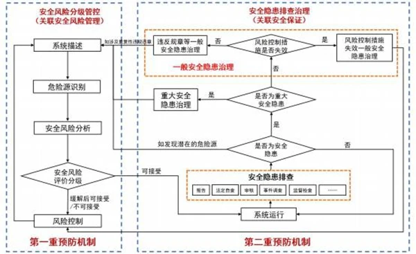 如發(fā)現(xiàn)重大安全隱患,應(yīng)按照8.3的要求進(jìn)行治理;如發(fā)現(xiàn)一般安全隱患,應(yīng)當(dāng)按照8.4的要求進(jìn)行治理;排查中如發(fā)現(xiàn)潛在的危險源,應(yīng)回溯到“7.2系統(tǒng)描述”進(jìn)行定位和梳理,適時啟動安全風(fēng)險分級管控流程識別危險源并管控相關(guān)風(fēng)險;如評估發(fā)現(xiàn)的問題不屬于上述任何一類,可選擇是否改進(jìn)后,回到系統(tǒng)運(yùn)行環(huán)節(jié)。