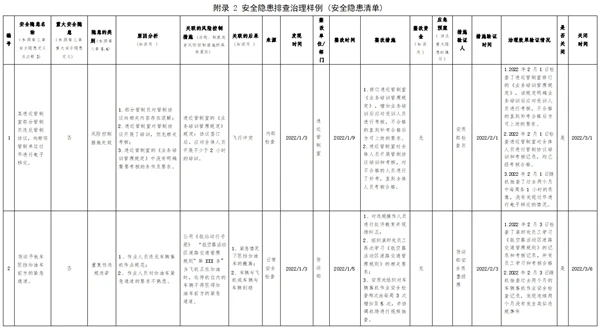 (2)對重大安全隱患除填入安全隱患清單外,還應(yīng)建立專門的信息檔案,包括重大安全隱患的治理方案、復(fù)查驗(yàn)收報告以及報送情況等各種記錄和文件。