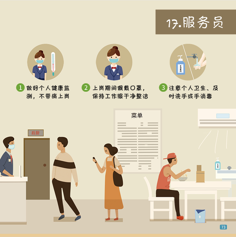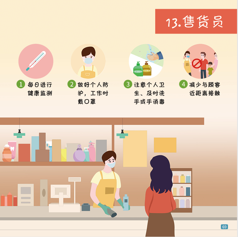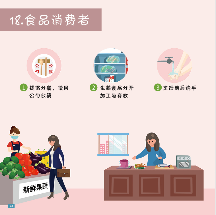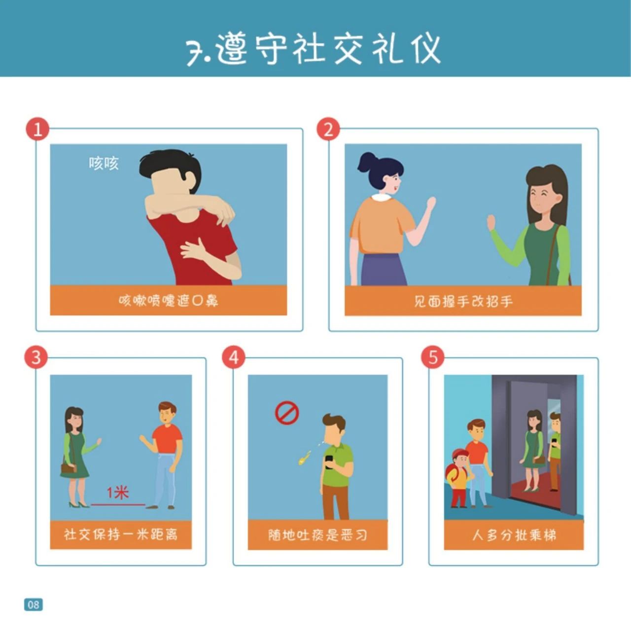 《公民防疫行為準(zhǔn)則》(科普版)共三部分73類。 第一部分為公民防疫基本行為準(zhǔn)則,包括勤洗手、戴口罩、少聚集、分餐制、社交禮儀以及廁所衛(wèi)生、通風(fēng)與消毒、健康生活等八方面; 第二部分和第三部分針對(duì)重點(diǎn)場(chǎng)所、重點(diǎn)人群主動(dòng)防疫的關(guān)鍵風(fēng)險(xiǎn)點(diǎn),對(duì)不同場(chǎng)景、不同人群提出健康防護(hù)準(zhǔn)則。 旨在通過(guò)圖文并茂、貼近生活的形式,讓公眾看得懂、易接受、記得牢、做得到,將公民防疫行為準(zhǔn)則作為一種社會(huì)文明風(fēng)尚和健康生活方式,持久地堅(jiān)持下去、推廣開(kāi)來(lái)。