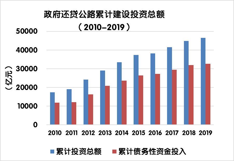 (注:累計(jì)建設(shè)投資總額指歷年和當(dāng)年收費(fèi)公路建設(shè)投資額的合計(jì))