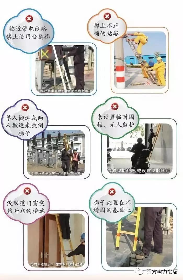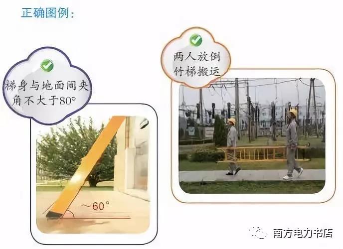(6)在部分停電或不停電的作業(yè)環(huán)境下,應(yīng)使用絕緣梯。在帶電設(shè)備區(qū)域中,距離運行設(shè)備較近時,嚴(yán)禁使用金屬梯。在戶外變電站和高壓室內(nèi)搬動梯子、管子等長物,應(yīng)兩人放倒搬運,并與帶電部分保持足夠的安全距離,以免人身觸電氣設(shè)備發(fā)生事故。