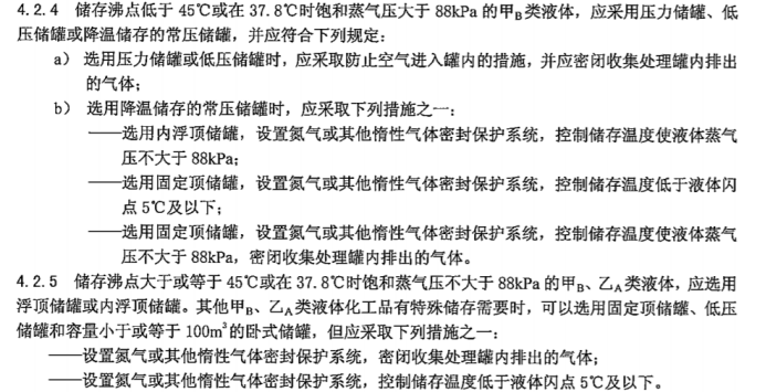 6.2.4A條款:儲存溫度超過120℃的重油固定頂罐應(yīng)設(shè)置氮氣保護(hù)。