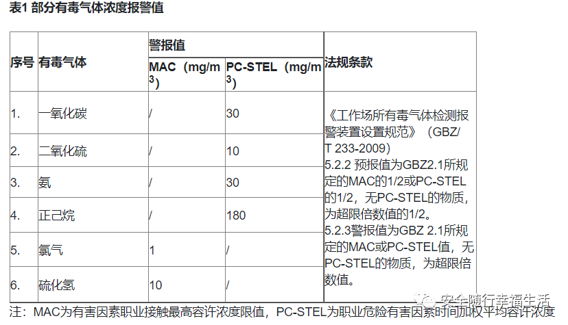 常見可燃、毒性氣體量程及報(bào)警值設(shè)定