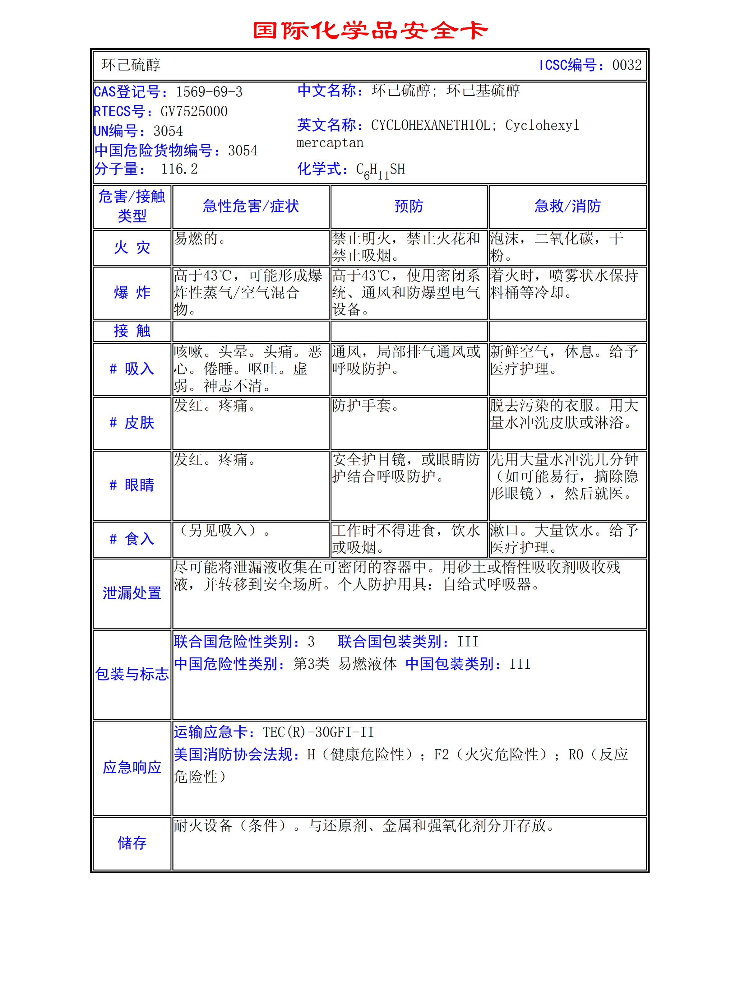 環(huán)己硫醇MSDS