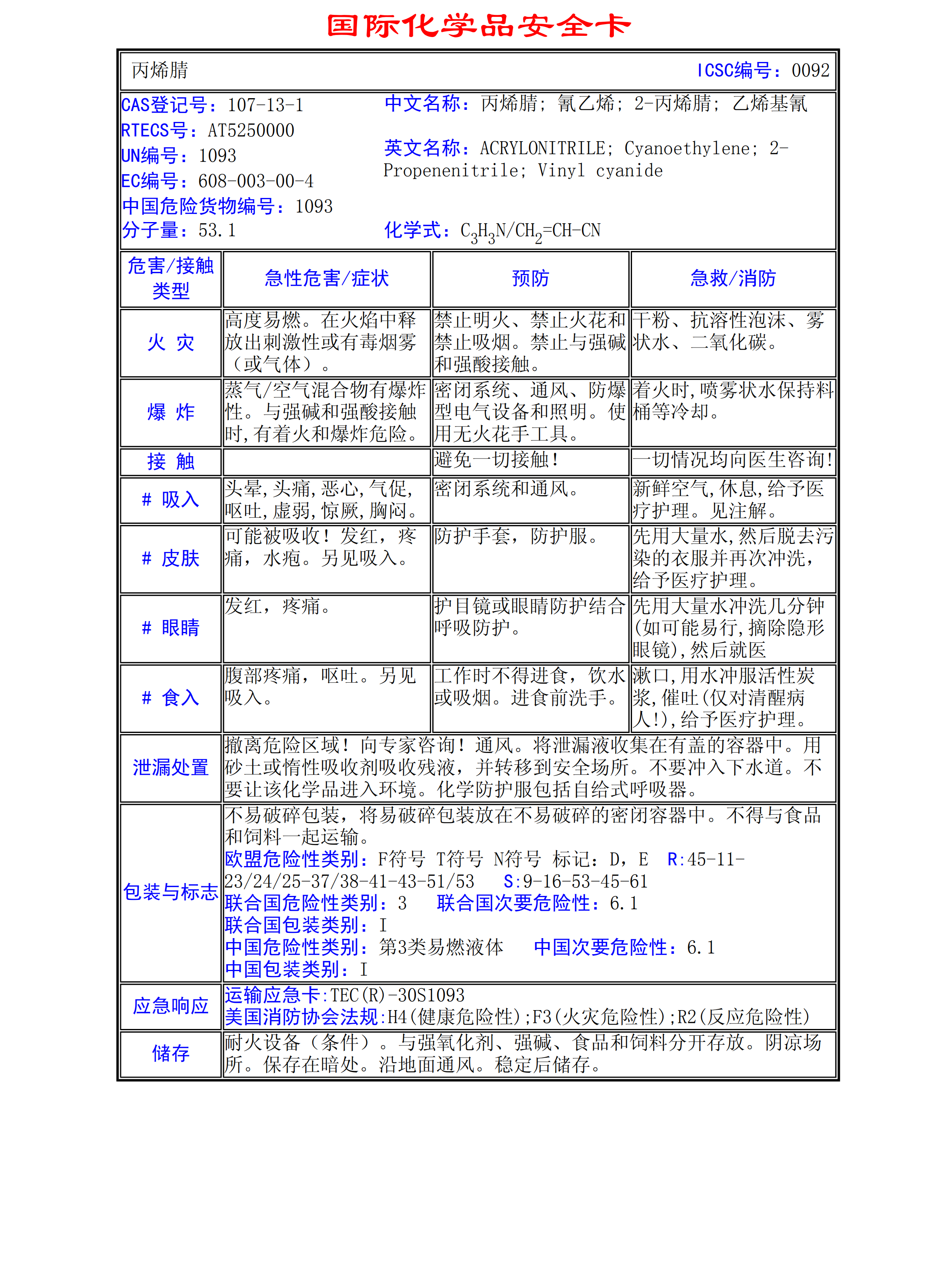 丙烯月青MSDS