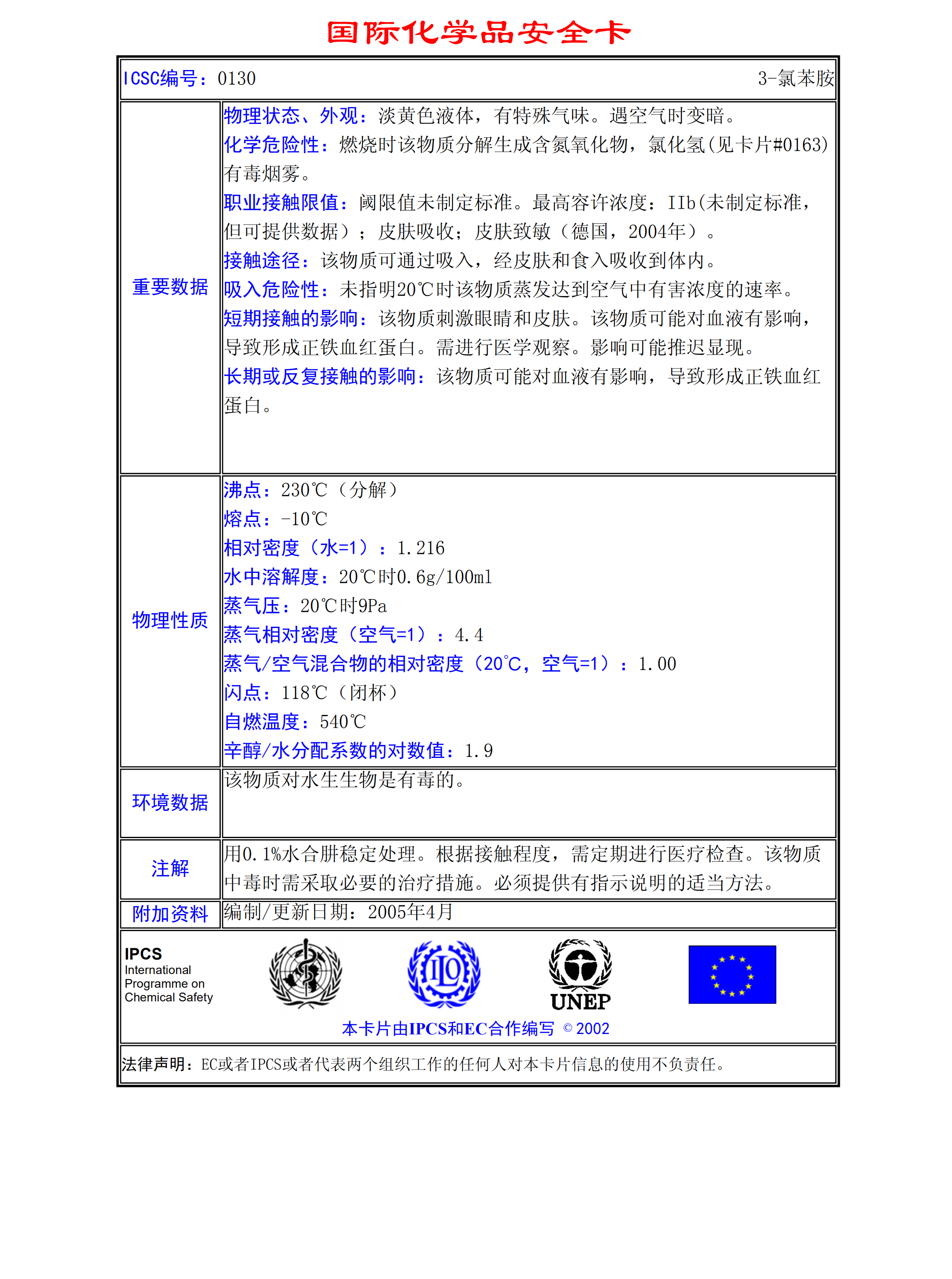 3-氯苯胺MSDS