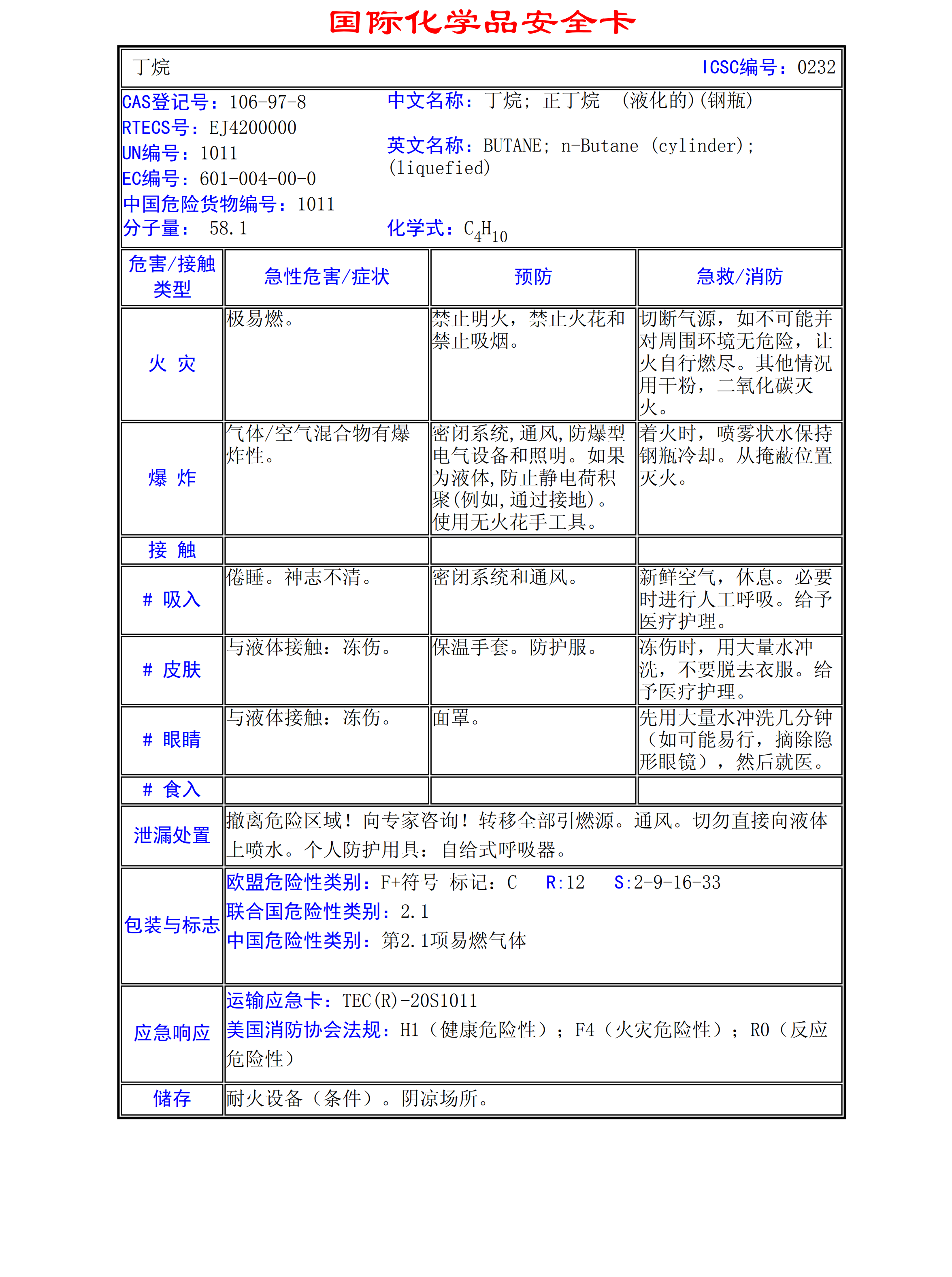 丁烷MSDS