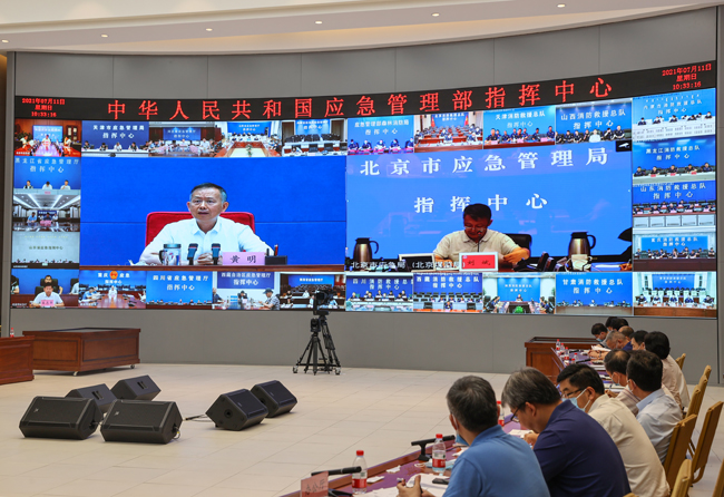 7月11日,國(guó)家防總副總指揮、應(yīng)急管理部部長(zhǎng)黃明主持召開(kāi)防汛專(zhuān)題視頻會(huì)商調(diào)度會(huì)議,與中國(guó)氣象局、水利部、自然資源部會(huì)商研判,視頻連線(xiàn)四川、陜西、河南、山西、河北、北京等地防指、消防救援總隊(duì)和森林消防總隊(duì),會(huì)商部署當(dāng)前防汛和北方強(qiáng)降雨防范應(yīng)對(duì)工作。周學(xué)文、徐平、閔宜仁、瓊色等部領(lǐng)導(dǎo)參加會(huì)議。