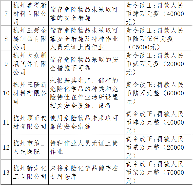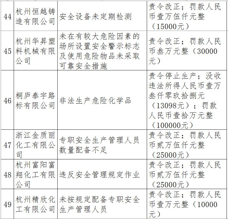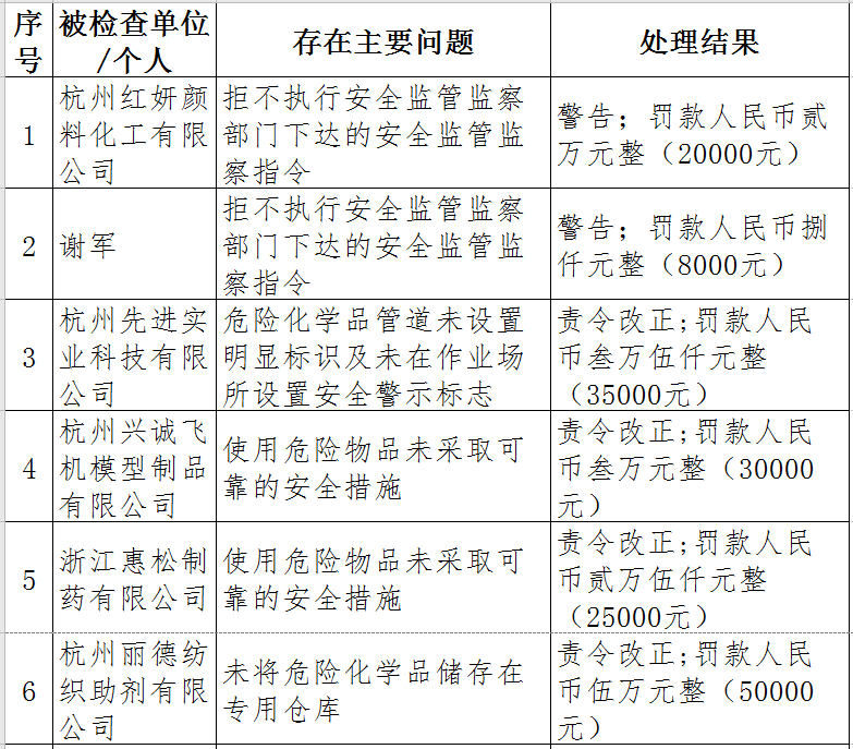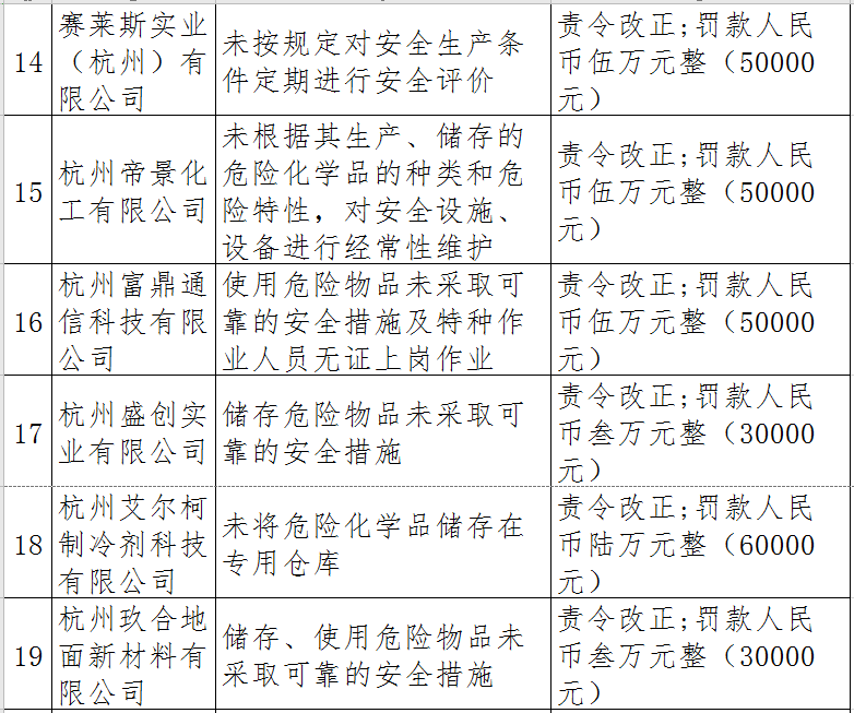 近日,杭州市應(yīng)急管理局對(duì)50多家被行政處罰的企業(yè)(個(gè)人)進(jìn)行曝光