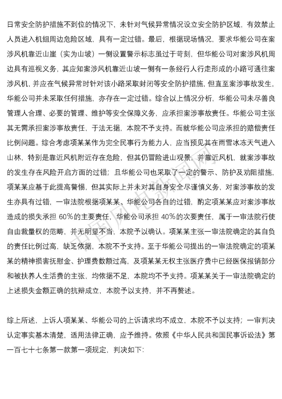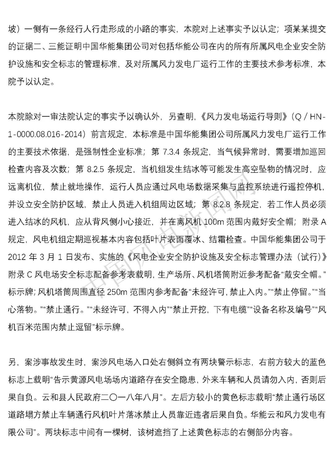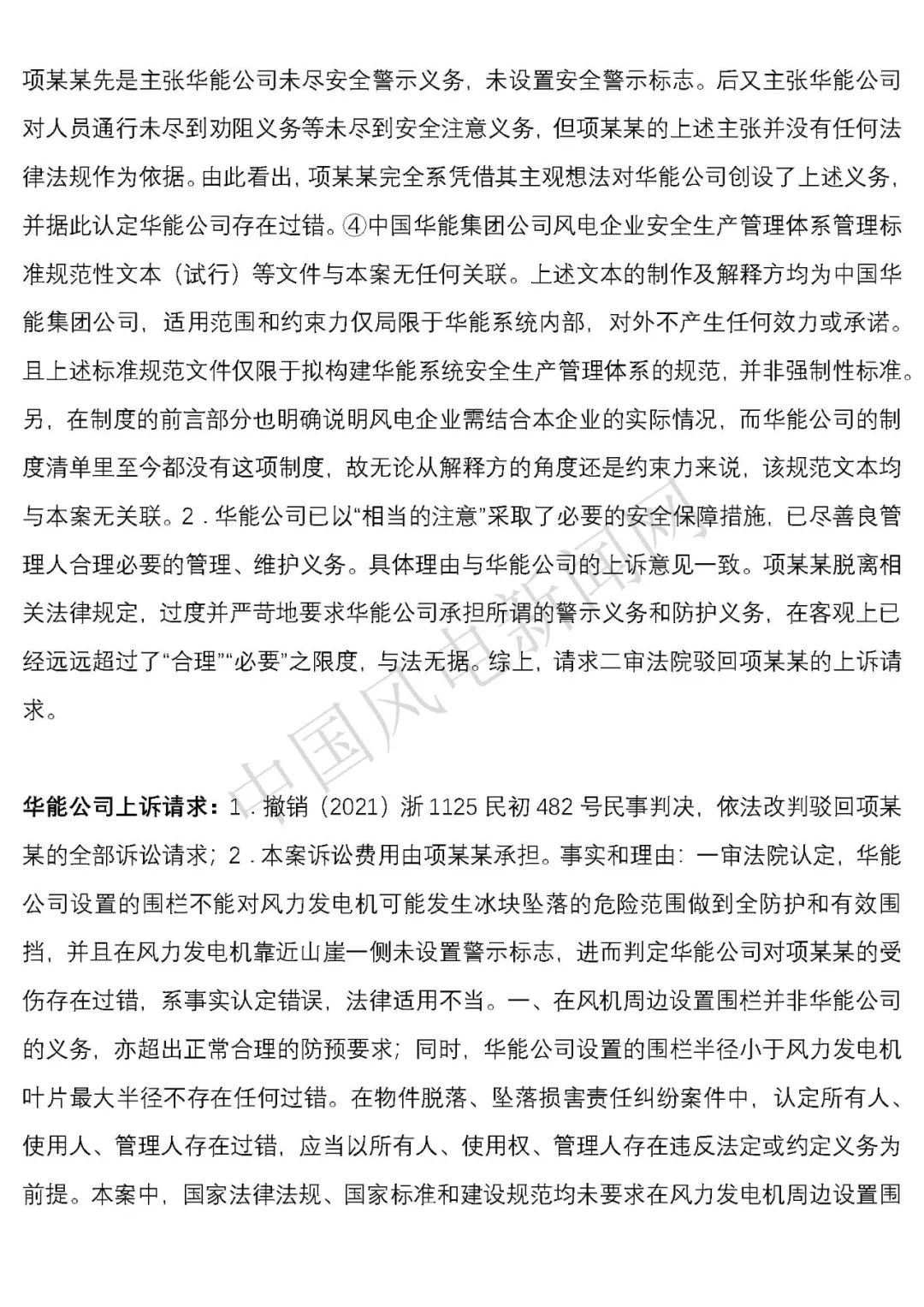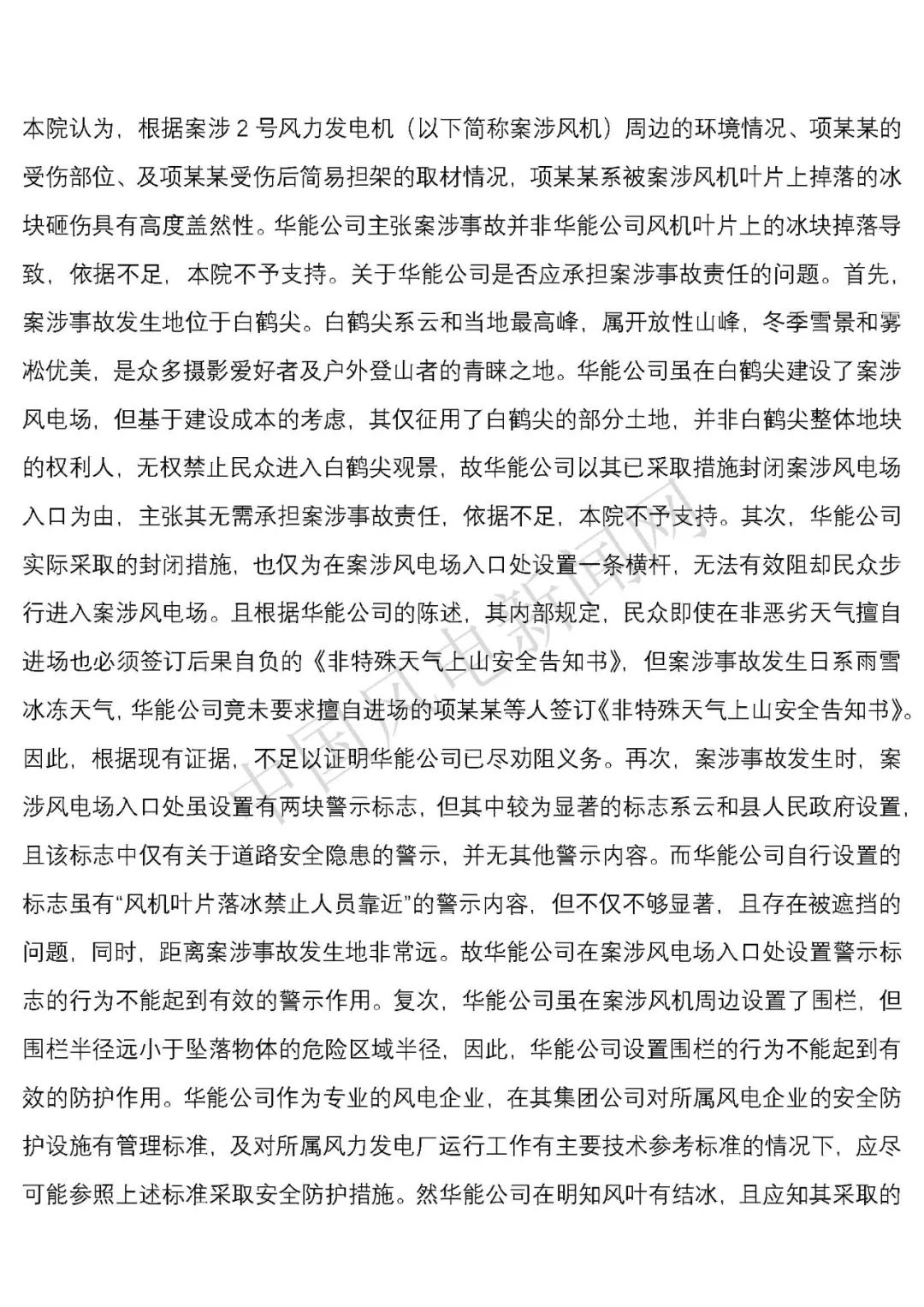 華能浙江某風電場葉片結(jié)冰冰塊掉落砸傷路人案宣判