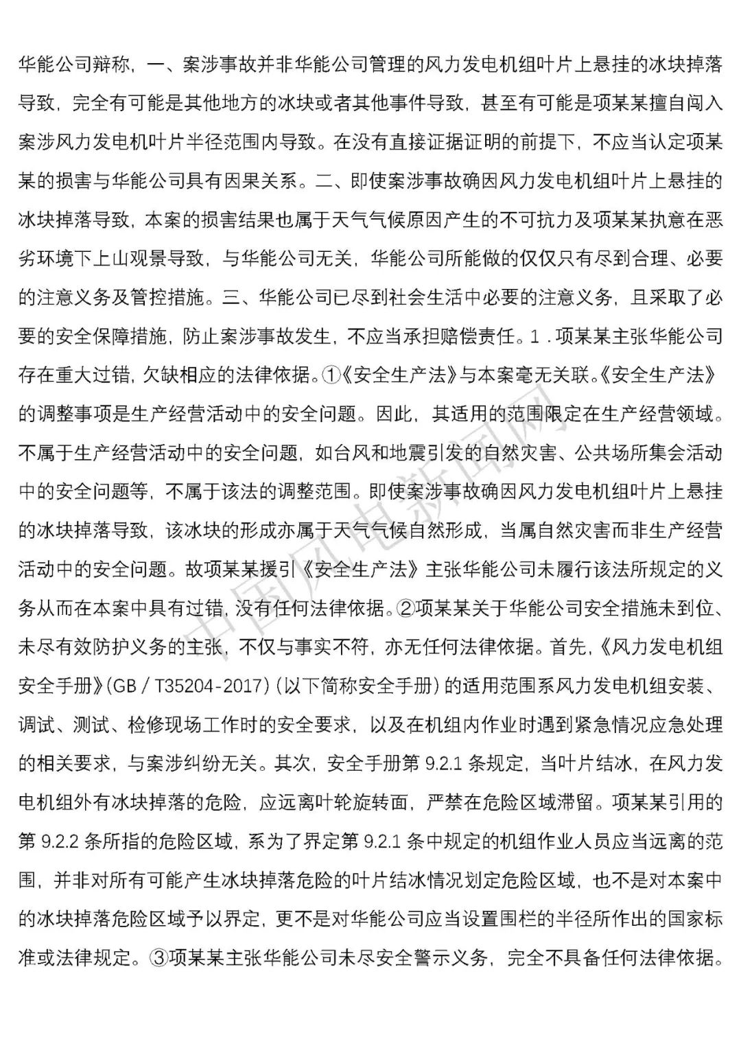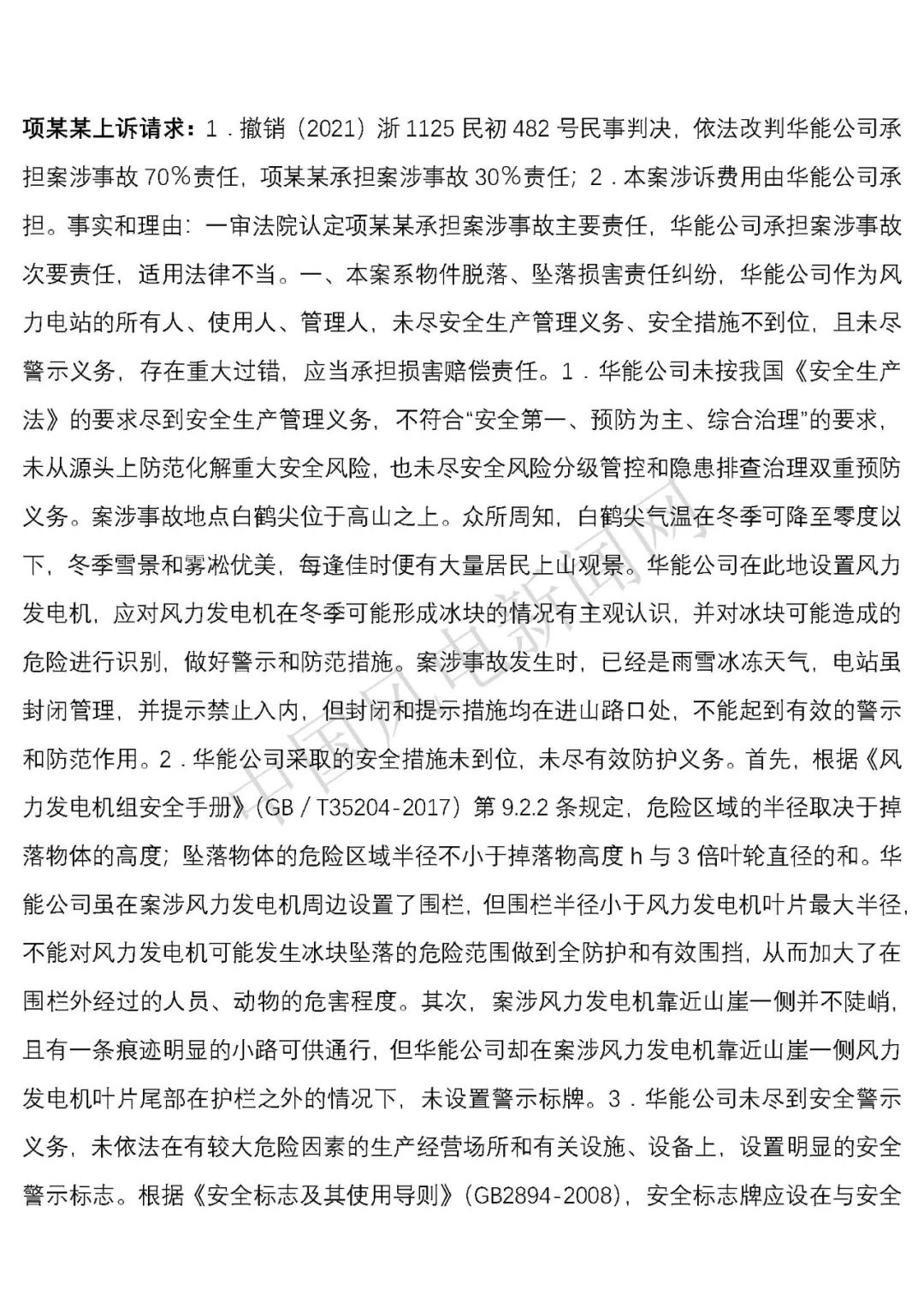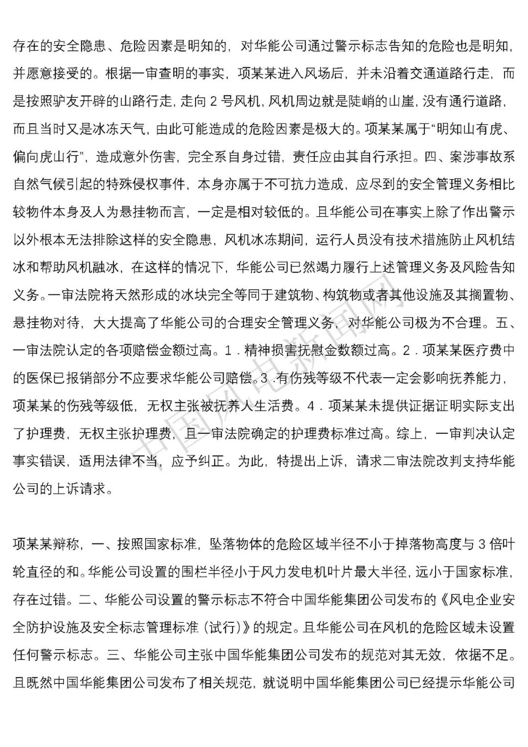 華能浙江某風電場葉片結(jié)冰冰塊掉落砸傷路人案宣判