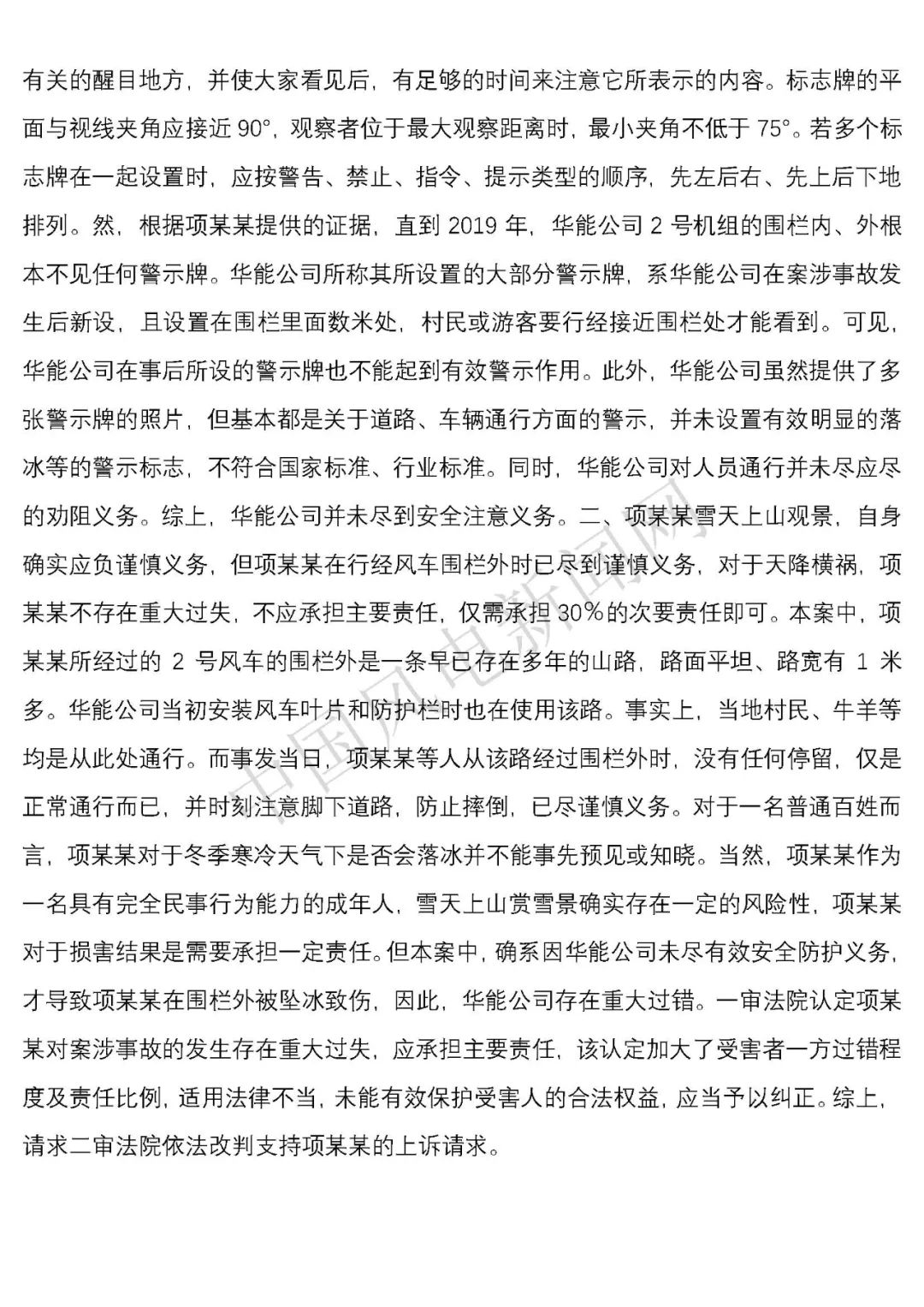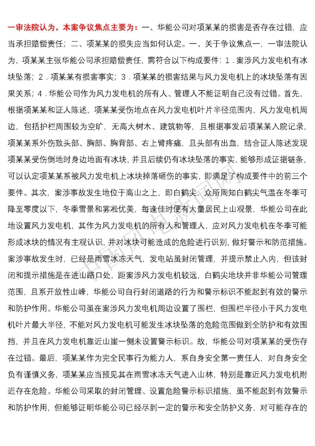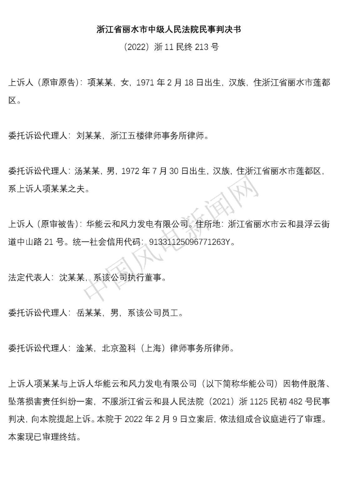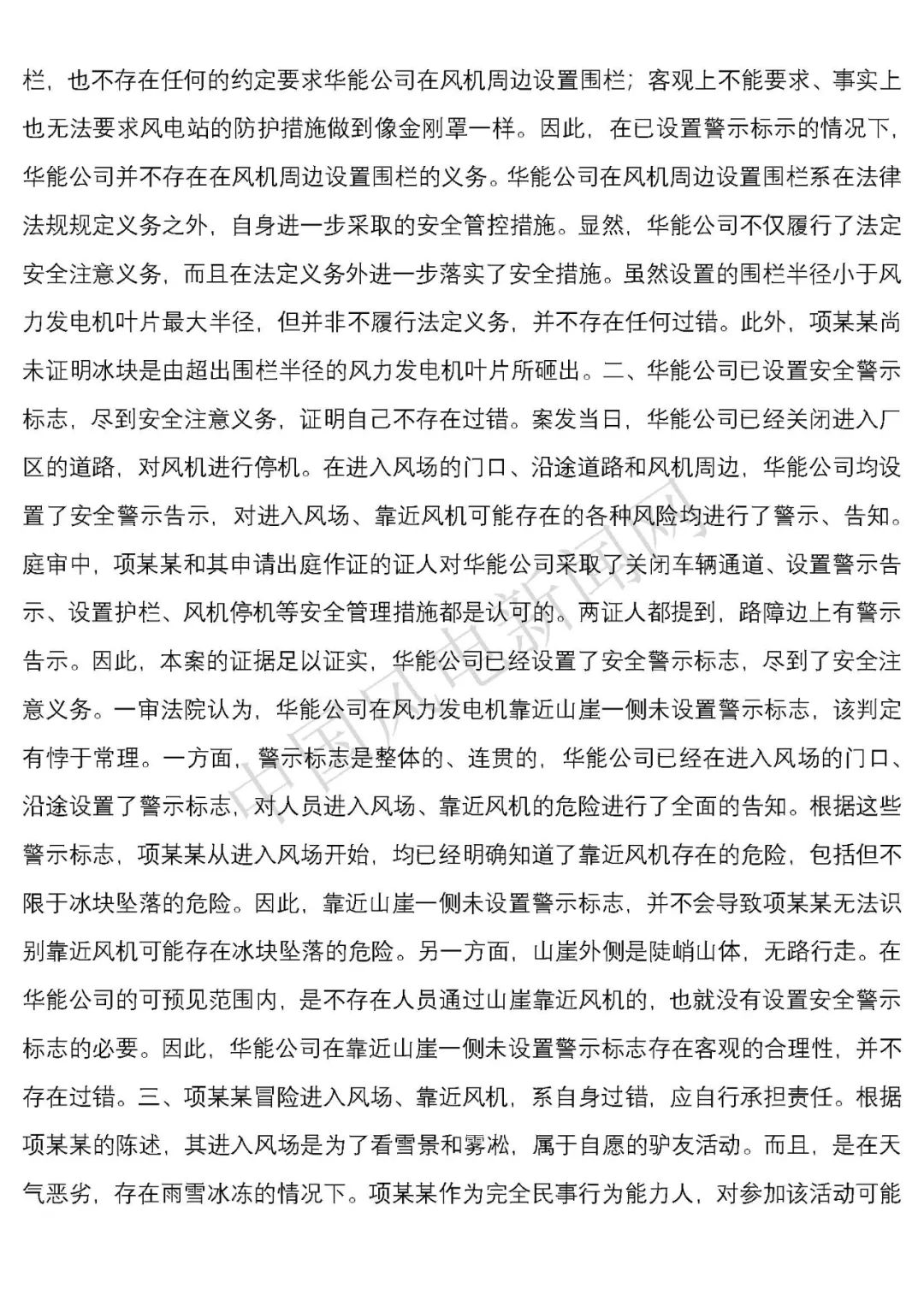 華能浙江某風電場葉片結(jié)冰冰塊掉落砸傷路人案宣判