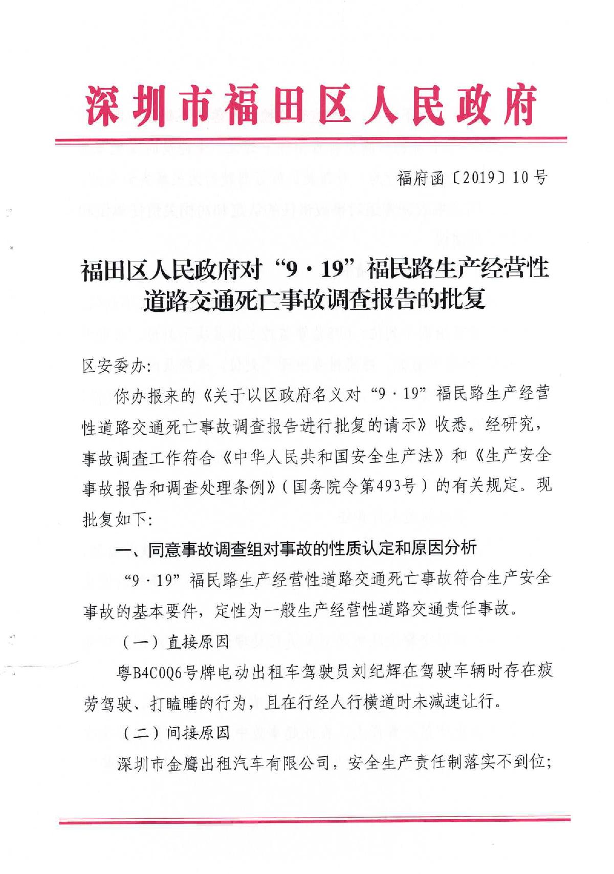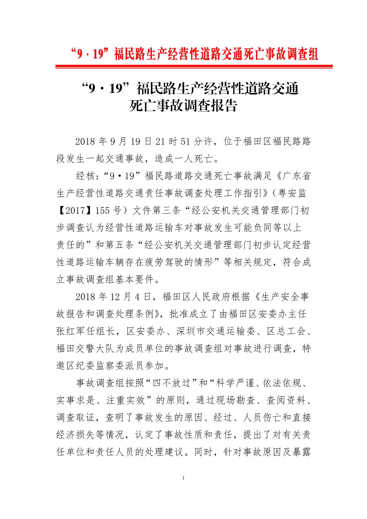 “9.19”福民路生產(chǎn)經(jīng)營性道路交通死亡事故調(diào)查報告