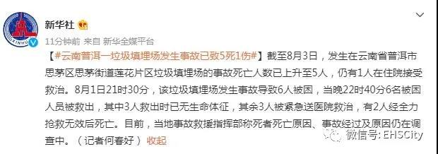 【#云南普洱一垃圾填埋場發(fā)生事故已致5死1傷#】截至8月3日,發(fā)生在云南省普洱市思茅區(qū)思茅街道蓮花片區(qū)垃圾填埋場的事故死亡人數(shù)已上升至5人,仍有1人在住院接受救治。8月1日21時30分,該垃圾填埋場發(fā)生事故導(dǎo)致6人被困,當(dāng)晚22時40分6名被困人員被救出,其中3人救出時已無生命體征,其余3人被緊急送醫(yī)院救治,有2人經(jīng)全力搶救無效后死亡。目前,當(dāng)?shù)厥鹿示仍笓]部稱死者死亡原因、事故經(jīng)過及原因仍在調(diào)查中。(記者何春好)極目新聞記者梳理發(fā)現(xiàn),普洱市中心城區(qū)生活垃圾焚燒發(fā)電廠建設(shè)項目,為思茅區(qū)2019年23項重點工作之一,于2019年啟動建設(shè),并優(yōu)先完成填埋區(qū)建設(shè)。2020年,普洱市相關(guān)領(lǐng)導(dǎo)曾前往思茅區(qū),實地調(diào)研市中心城區(qū)生活垃圾焚燒發(fā)電廠項目推進工作。公開資料顯示,2020年3月,配套填埋場正式投入使用,填埋場類型為填埋生活垃圾的衛(wèi)生填埋場,庫容為30.1萬立方。