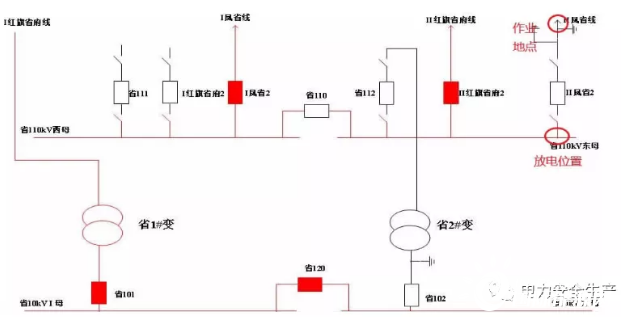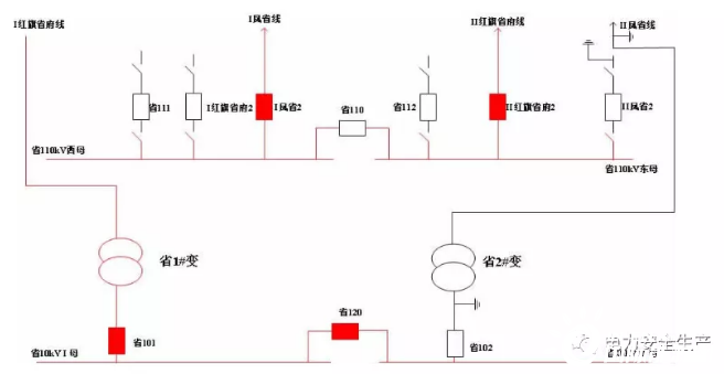 事發(fā)項目為某公司110千伏某變電站110千伏配電裝置改造,改造內(nèi)容為更換110千伏室內(nèi)敞開式手車斷路器,施工中標(biāo)單位為某集團(tuán)有限公司電力安裝分公司(省管產(chǎn)業(yè)單位,簡稱“安裝分公司”)。為不影響重要用戶供電,改造期間變電站采用Ⅰ紅旗省府線直接串帶省1#變、Ⅱ鳳省線直接串帶省2#變的過渡方式運行。6月12日改造完成后,110千伏母線恢復(fù)運行。(運行方式見圖1、圖2)