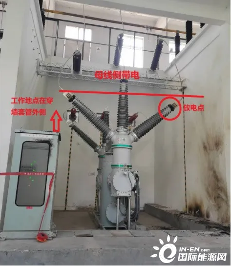 此時,110千伏II鳳省2開關(guān)處于冷備用狀態(tài),II鳳省2東刀閘母線側(cè)帶電。6月17日19時13分,安裝分公司工作負(fù)責(zé)人孫某和變電運維正值沈某前往II鳳省2開關(guān)間隔,違規(guī)使用鋼卷尺進(jìn)行測量工作(非工作票所列作業(yè)內(nèi)容),在鋼卷尺靠近帶電的母線引下線過程中發(fā)生放電,導(dǎo)致孫某觸電死亡,沈某被嚴(yán)重?zé)齻?。(事發(fā)發(fā)生現(xiàn)場見圖3)