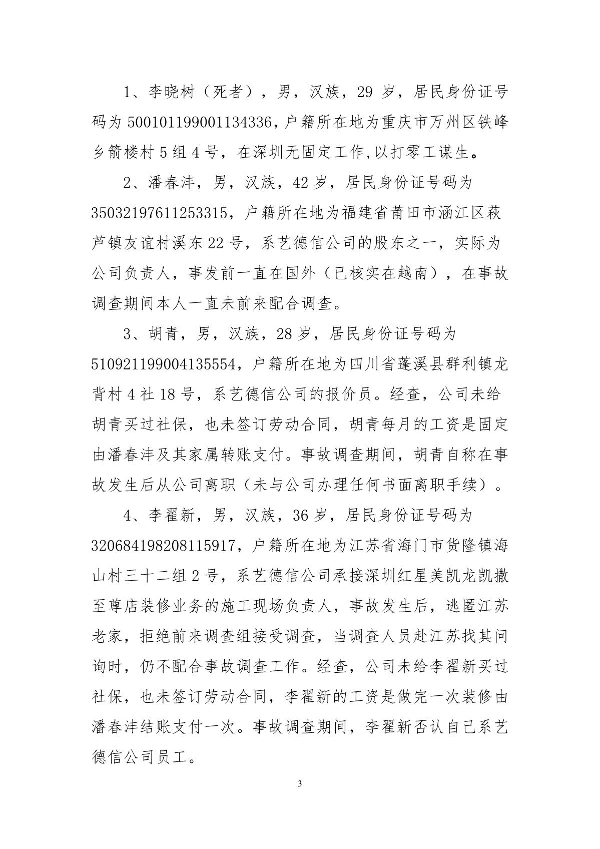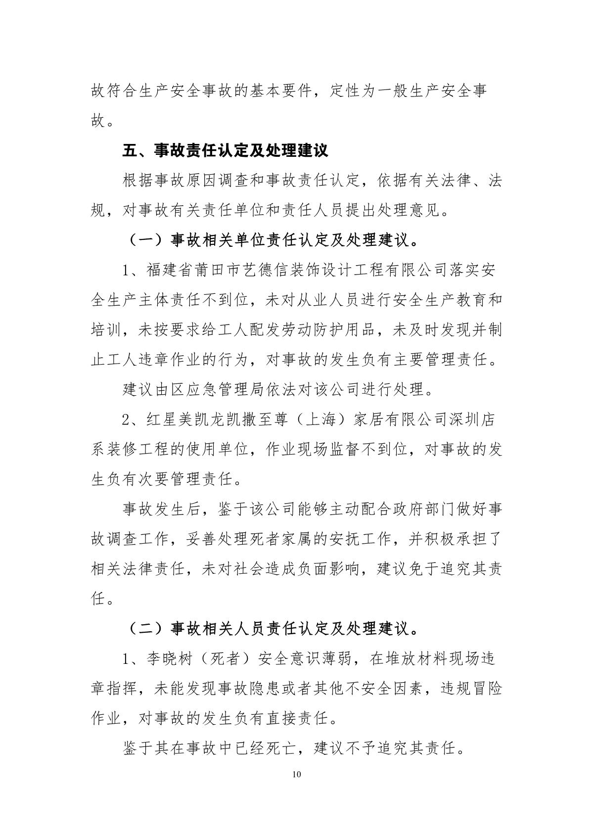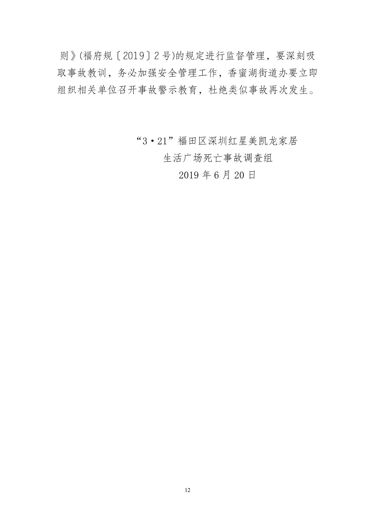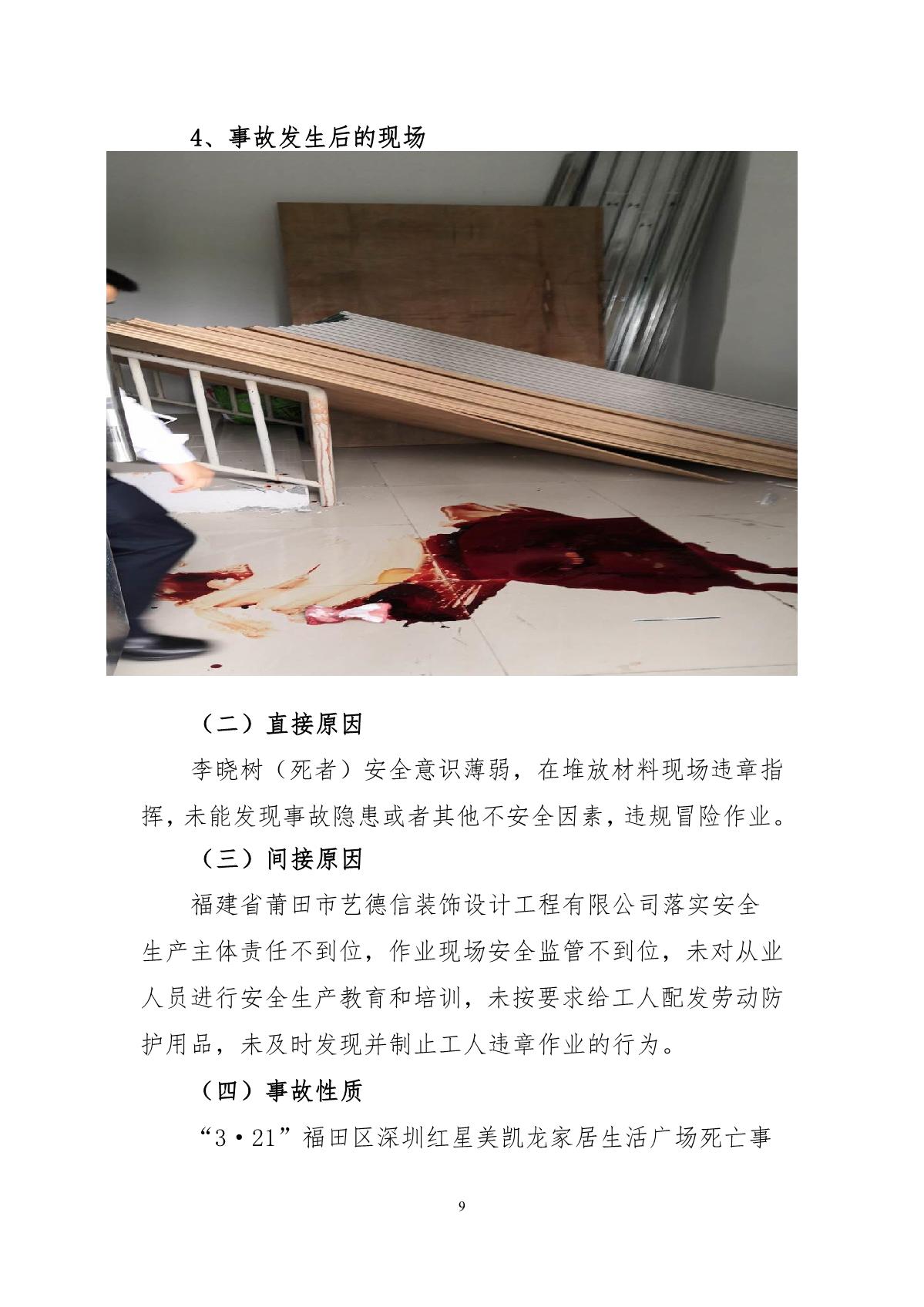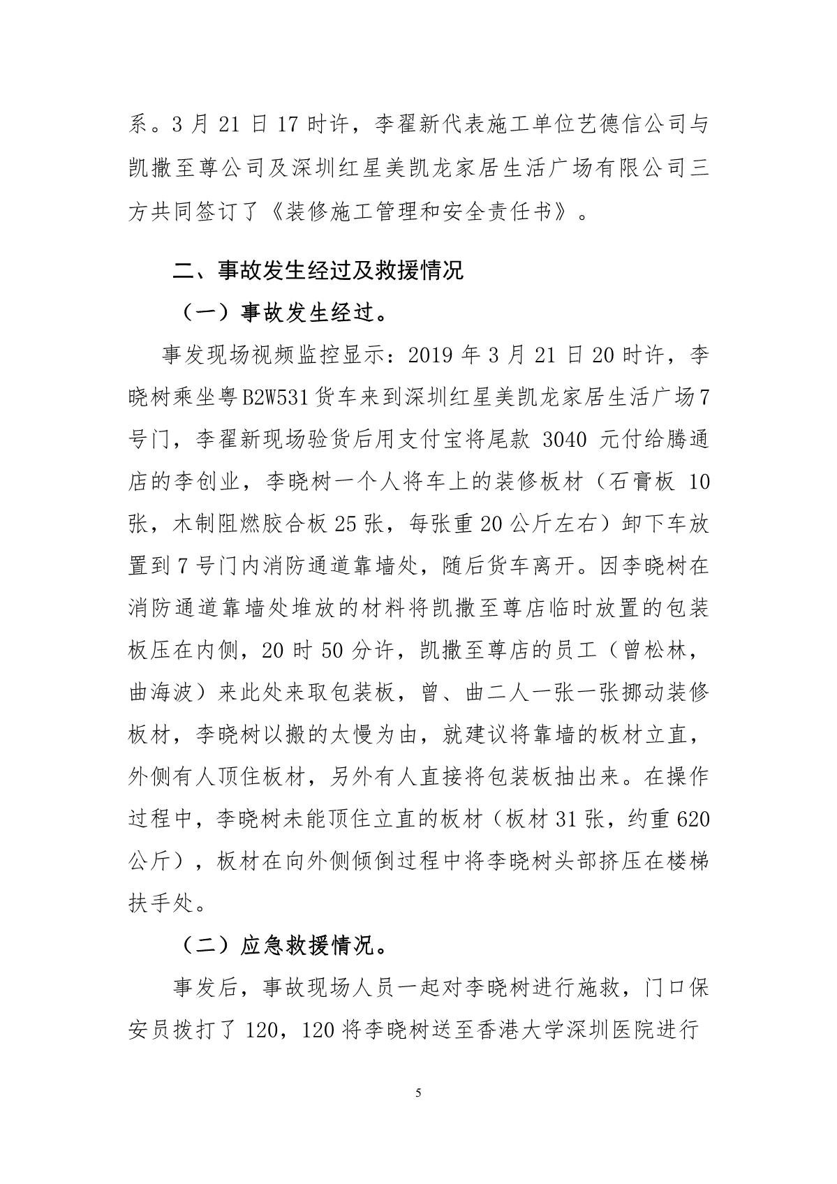 “3.21”福田區(qū)深圳紅心美凱龍家居生活廣場死亡事故調(diào)查報告