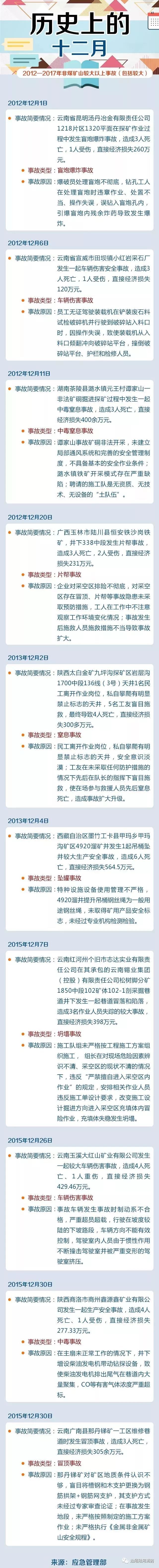 據(jù)不完全統(tǒng)計,2012年-2017年12月非煤礦山發(fā)生較大以上事故(包括較大)10起,中毒和窒息類事故多發(fā)!