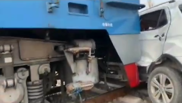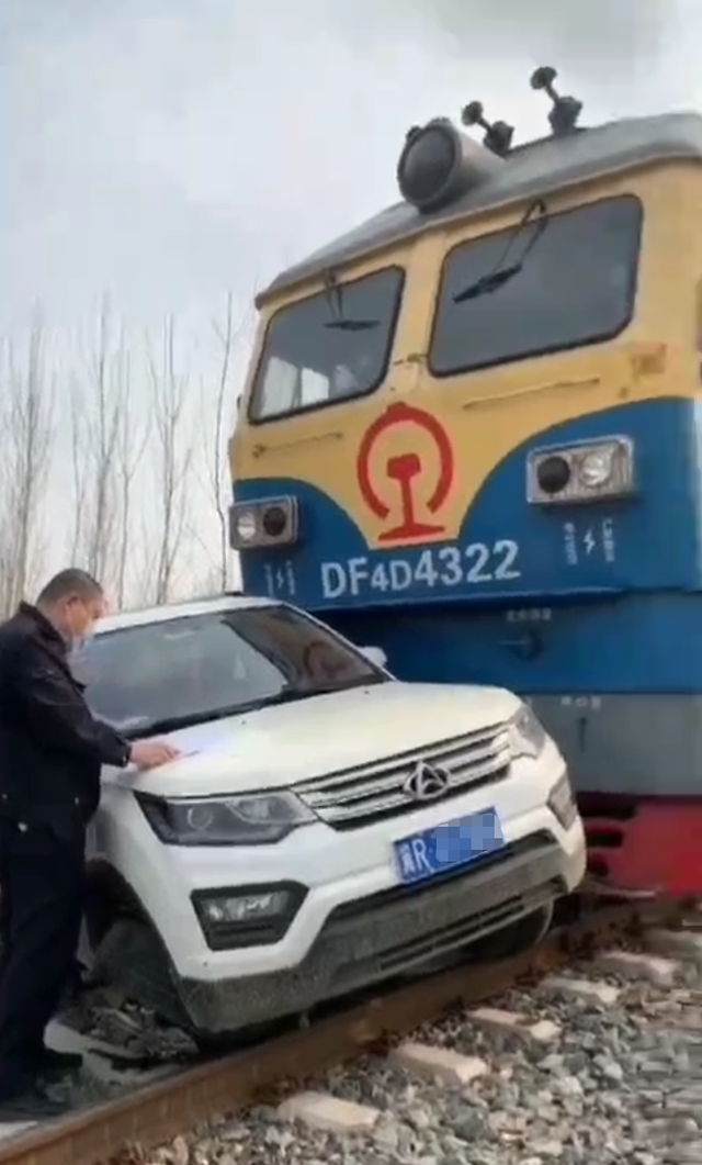 據(jù)網(wǎng)傳視頻顯示,一輛車牌為“冀R”開頭的白色SUV,與一列藍(lán)黃車頭的貨運火車相撞后,橫停在鐵路中間,白色汽車駕駛座后座的車門已凹陷變形,周圍有不少圍觀群眾。 據(jù)當(dāng)?shù)毓ぷ魅藛T證實,的確有這么一件事,具體事故原因還在進(jìn)一步調(diào)查中,后續(xù)會發(fā)布官方通報。據(jù)悉,并未有人員受傷。