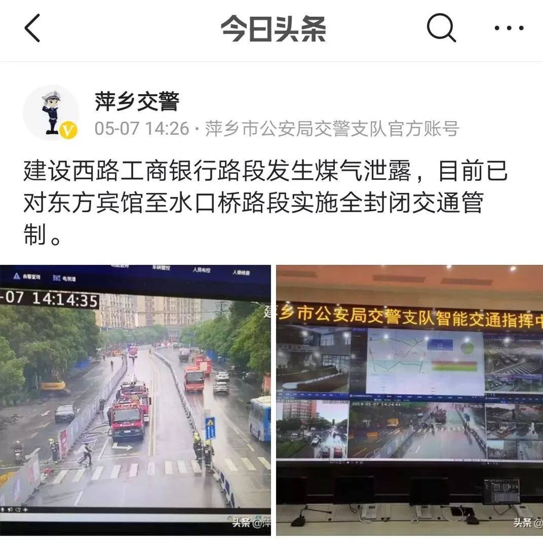 5月7日下午14時(shí)09分,萍鄉(xiāng)交警支隊(duì)指揮中心接到消防支隊(duì)119電話(huà),在建設(shè)西路工商銀行路段發(fā)生天然氣泄漏事件,請(qǐng)求交警增援并實(shí)施路面交通管控。