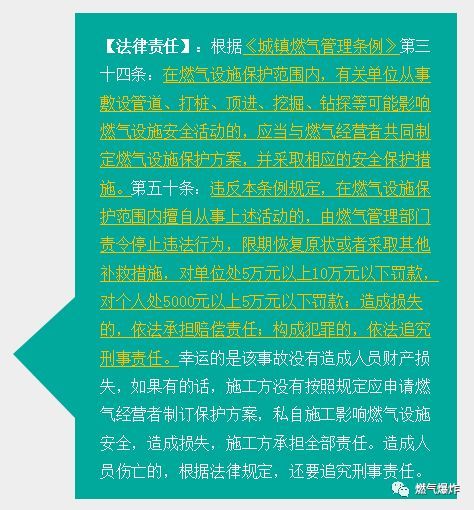 2、事故受害方責(zé)任追究過程中需要考量的內(nèi)容包含但不限于:燃?xì)夤驹谥脫Q通氣時是否履行了安全宣傳教育;燃?xì)夤臼欠衩磕甓既霊舭矙z并對燃?xì)怆[患提出整改意見;燃?xì)夤景惭b燃?xì)庠?、燃?xì)鈭缶骱碗姶砰y是否符合國家規(guī)范;燃?xì)夤咎峁┑娜細(xì)庠?、燃?xì)鈭缶骱碗姶砰y是否質(zhì)量合格;其他需要注意的問題。