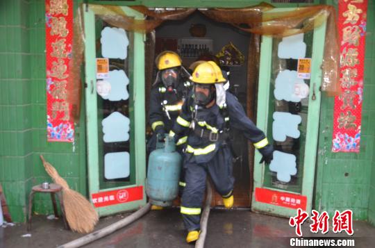 飯店負(fù)責(zé)人告訴消防官兵,飯店內(nèi)一共有三具液化氣罐,其中,兩個(gè)放在廚房的液化氣罐有一個(gè)已被明火吞沒,他們?cè)雽⒈粺囊夯瘹夤蘖喑鰜?lái),但因火勢(shì)太猛而未能成功。