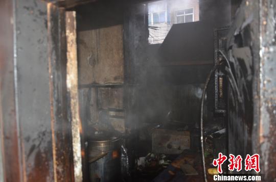 圖為失火的飯店廚房?!∠拦﹫D 攝