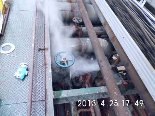| 4月24日 | 由于“沈陽(yáng)蠟化”氣分裝置脫丙烷塔頂冷凝器E9003及脫乙烷塔頂冷凝器E9006內(nèi)漏,烴類(lèi)物料竄入循環(huán)水中,污染循環(huán)水水質(zhì)又造成裝置收率下降,于4月24日按照局部停工方案退出物料,并在吹掃、置換系統(tǒng)后由“十三化建”搶修、更換換熱器管束。 | |